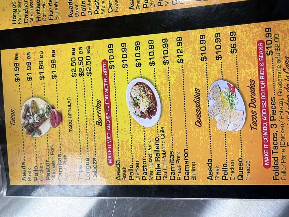 Popular. Asada, pollo, lengua, cabeza, or milanes.